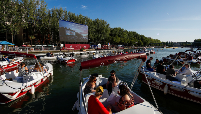 法國巴黎辦“水上影院” 市民乘船觀看電影