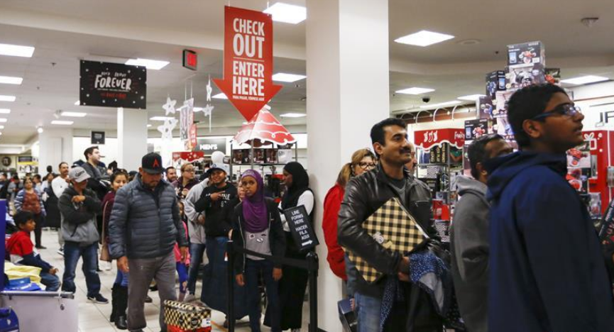 當(dāng)日,美國(guó)眾多商家競(jìng)相開(kāi)展“黑色星期五”促銷活動(dòng),吸引大批顧客搶購(gòu)。?