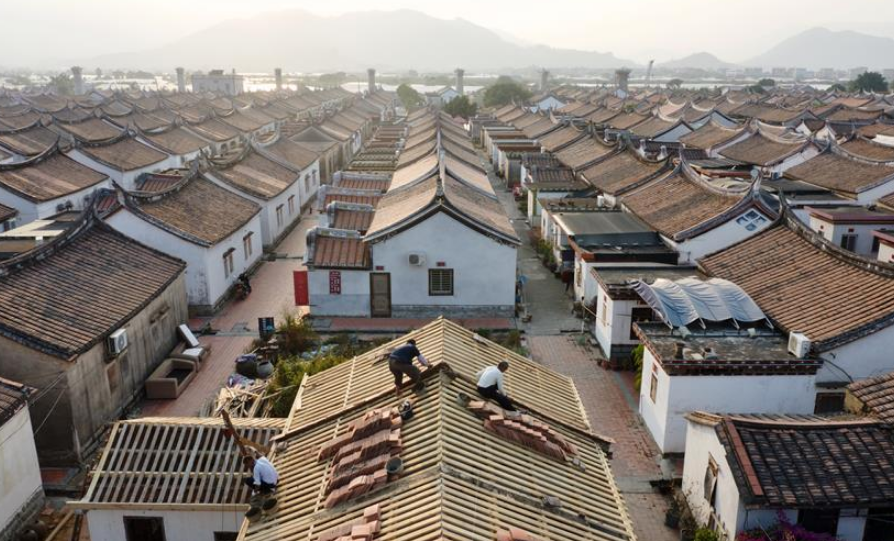 空中俯瞰閩南水上古村落——埭美村