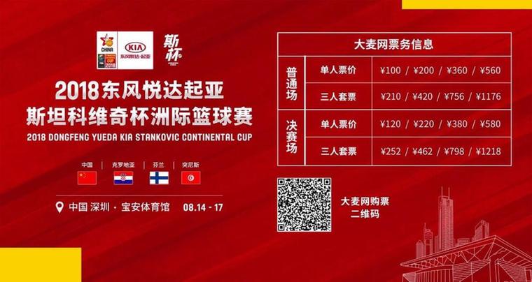 大麥網(wǎng)也正式開(kāi)啟了斯杯賽事門(mén)票,門(mén)票非常實(shí)惠。票價(jià)為:平常比賽日:100元,200元, 360元,560元;決賽日:120元,220元, 380元,580元;套票三人價(jià)格普通場(chǎng):210元,420元,756元,1176元;套票三人價(jià)格決賽:252元,462元,798元,1218元。