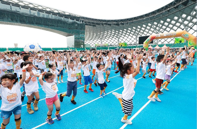 而在環(huán)球足球挑戰(zhàn)環(huán)節(jié),許多小選手是第一次接觸足球。通過(guò)數(shù)碼感應(yīng)裝置和小選手們佩戴的智能手環(huán),將帶球、頂球、射門等足球動(dòng)作實(shí)時(shí)反饋呈現(xiàn)運(yùn)動(dòng)結(jié)果,其樂(lè)無(wú)窮的項(xiàng)目讓孩子們一一挑戰(zhàn)停不下來(lái)!