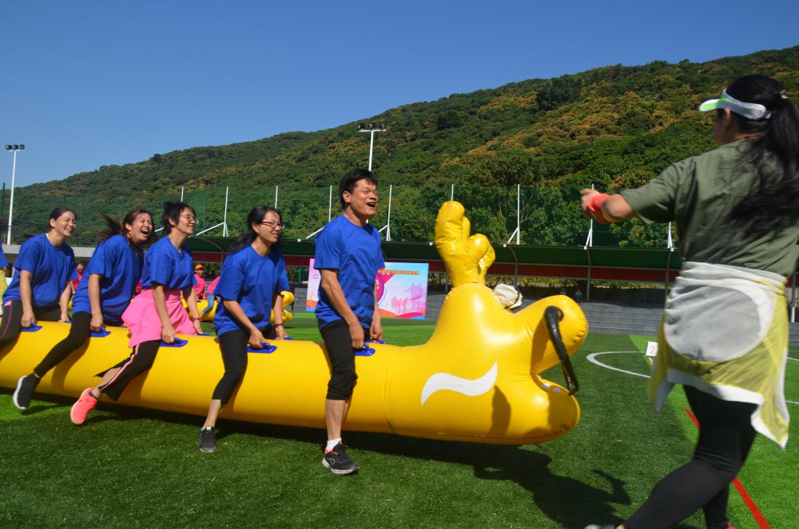 “龍行天下”游戲考驗(yàn)隊(duì)員的協(xié)調(diào)能力和合作精神,既需要技巧也非常消耗體力,隊(duì)員們激情滿滿,現(xiàn)場(chǎng)氛圍十分火爆,最終,開(kāi)心隊(duì)(藍(lán)隊(duì))以8分的好成績(jī)又拿到了第一名。