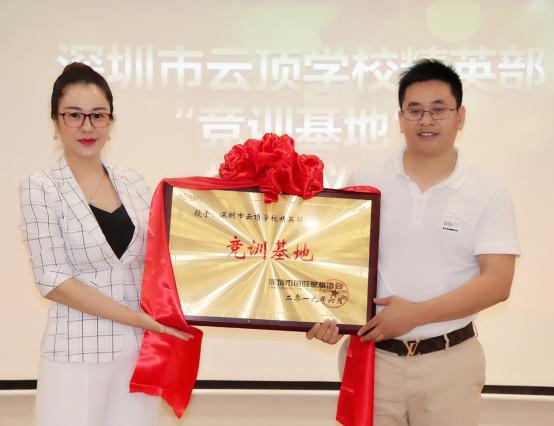 儀式現(xiàn)場,云頂學(xué)校精英部唐勇校長和葉美娜會長為“競訓(xùn)基地”揭牌,家族夢教育邢朝云院長和葉美娜會長為“家長聯(lián)誼會”揭牌。