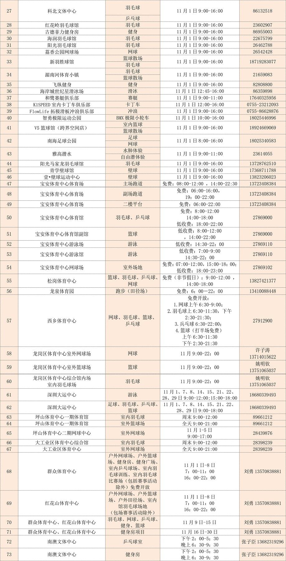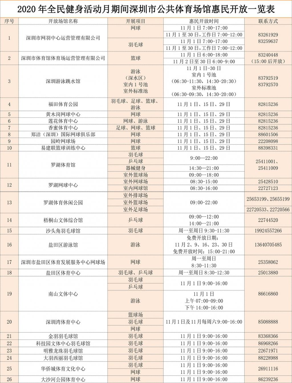 2020年深圳全民健身活動(dòng)月深圳惠民場館開放表