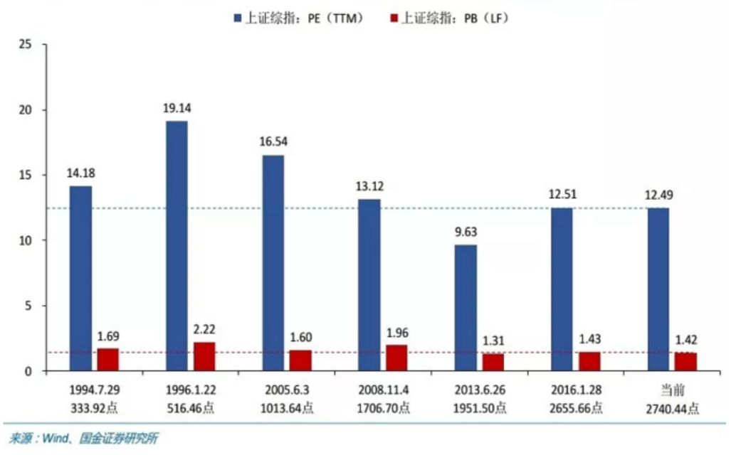 估值處于歷史第二底部:除上證A股外,其他板塊估值全面低于2014年低點(diǎn),深證A股和中小板幾乎與2012年12月份的低點(diǎn)持平。對比上證綜指歷次歷史大底的市盈率和市凈率來看,當(dāng)前估值僅略高于2013年1951點(diǎn)的時(shí)候,在7次歷史大底中位列倒數(shù)第二。