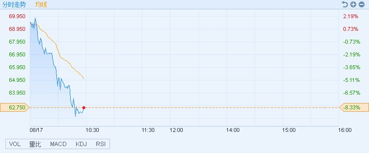 智通財(cái)經(jīng)APP獲悉,受產(chǎn)業(yè)政策影響,醫(yī)藥股普跌,藥明生物(02269)領(lǐng)跌板塊,連續(xù)三個(gè)交易日下挫,跌逾兩成。截至10時(shí)26分,跌8.33%,報(bào)價(jià)62.75港元,成交額2.27億。