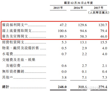 土巴兔的銷售人員開支從2015年的4720萬元大幅增至2016年的1.29億元,并在2017年維持1.2億元左右高位。不過隨著公司規(guī)模化運(yùn)營的展開,公司線上買量開支卻從1億元降至7940萬元。