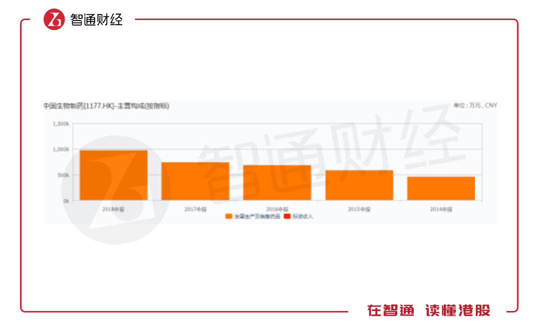 再說中國生物制藥,2018年中期的收入是97.25億,同比增長30%;歸屬于母公司持有者應(yīng)占盈利約13.66億,同比增長24.1%。期間計(jì)入權(quán)益投資和金融資產(chǎn)未實(shí)現(xiàn)公允價(jià)值利潤及虧損和海外匯兌差異凈額前,歸屬于母公司持有者應(yīng)占盈利約14.27億元,較去年同期增長約41.9%。