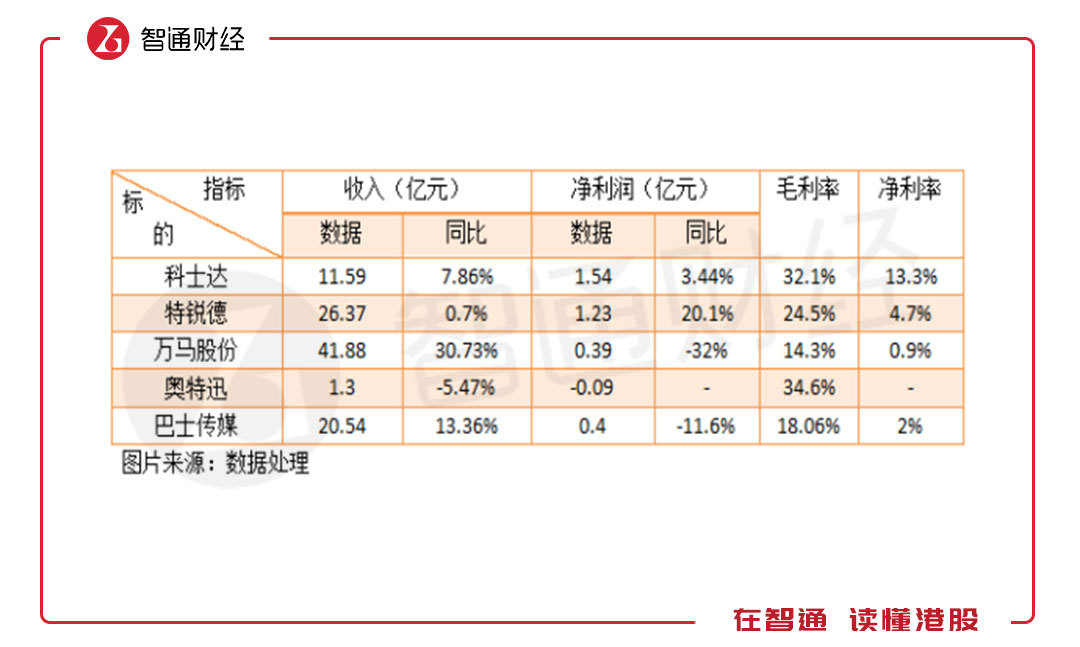 下游設備運營商主要是充電樁運營以及充電站的運營,參與者的業(yè)績相對來說比中游要好很多。參與者中,包括科士達、特銳德、萬馬股份、奧特迅以及巴士傳媒,當然有些公司除了做充電樁運營之外也會存在其他業(yè)務,整體來看,部分參與者還是存在正向增長的業(yè)績的,但整體的利潤率仍偏低。