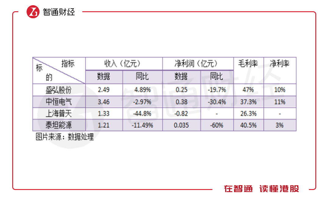 中游設備供應商中,包括A股上市公司盛宏股份、中恒電氣、上海普天以及港股唯一一家充電樁供應商泰坦能源技術(02188)。從收入及利潤數(shù)據(jù)上看,2018年上半年參與者收入和凈利潤均呈現(xiàn)較大幅度下滑,凄慘的很,要知道新能源汽車銷量增長了一倍多,且參與者的利潤率也很低。