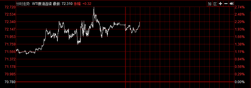 與此同時,WTI原油期貨上漲1.96%,報72.17美元/桶。