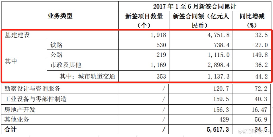 今年上半年,中國(guó)中鐵基建建設(shè)業(yè)務(wù)新簽合同5268億元,同比增長(zhǎng)9.1%,盡管依然維持增長(zhǎng),但增速較2017年上半年的32.5%大幅放緩,其中公路及城市軌道交通新簽合同額錄得負(fù)增長(zhǎng)。