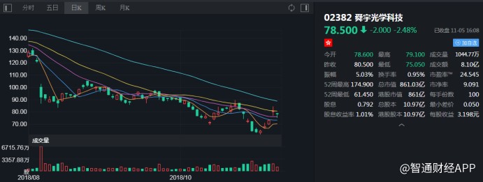 截至今日收盤(pán),舜宇光學(xué)科技(02382)報(bào)78.5港元,跌2.48%。(張佩暄)