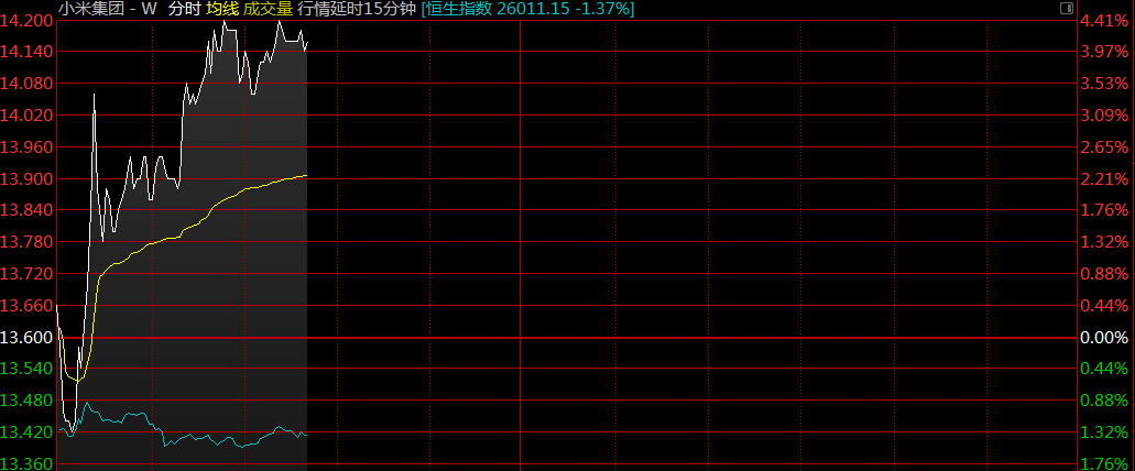 智通財經(jīng)APP獲悉,小米(01810)昨晚公布三季度業(yè)績,前三季度業(yè)績由虧轉(zhuǎn)盈100.86億元人民幣,10月末手機(jī)出貨量破1億。截至9時43分,漲2.21%,報價13.9港元,成交額2.88億。