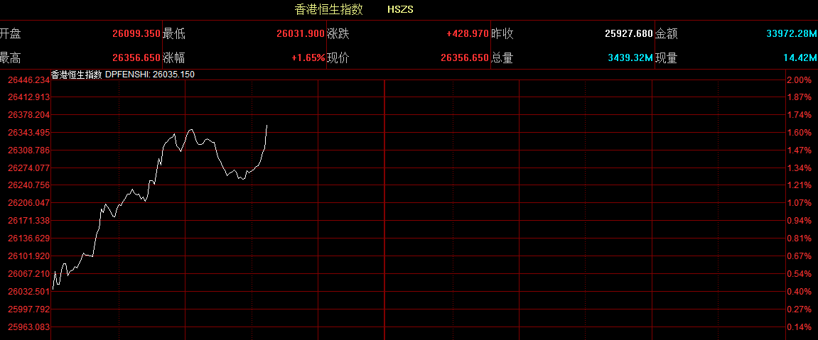 智通財(cái)經(jīng)APP獲悉,恒生指數(shù)開盤漲0.66%,報(bào)26099.35點(diǎn)。國企指數(shù)漲0.63%,報(bào)10453.82點(diǎn)。紅籌指數(shù)漲0.48%,報(bào)4281.96點(diǎn)。大市盤前成交11.68億港元。