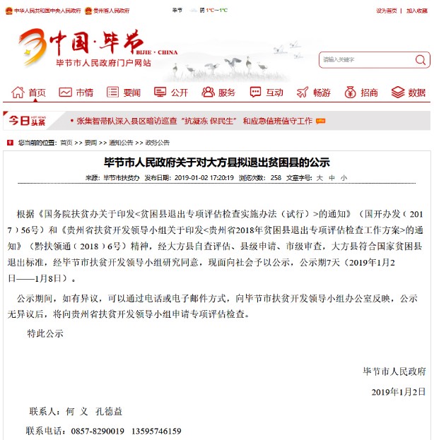 畢節(jié)市人民政府關(guān)于對(duì)大方縣擬退出貧困縣的公示