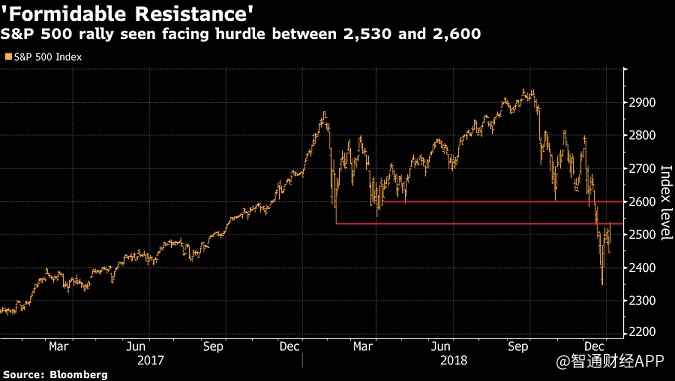 BayCrestPartners技術(shù)分析師喬納森?克林斯基(JonathanKrinsky)表示,對(duì)于標(biāo)準(zhǔn)普爾500指數(shù)來說,2530-2600點(diǎn)是一個(gè)重要的區(qū)間。前者標(biāo)志著2月份的市場(chǎng)底部,而2600點(diǎn)是10月份的止損位。在12月28日和1月2日兩次試圖突破2530點(diǎn)之后,標(biāo)準(zhǔn)普爾500指數(shù)上周五終于突破了這一門檻。盡管如此,在2531.94點(diǎn),它仍比2月盤中低點(diǎn)低了一點(diǎn)。