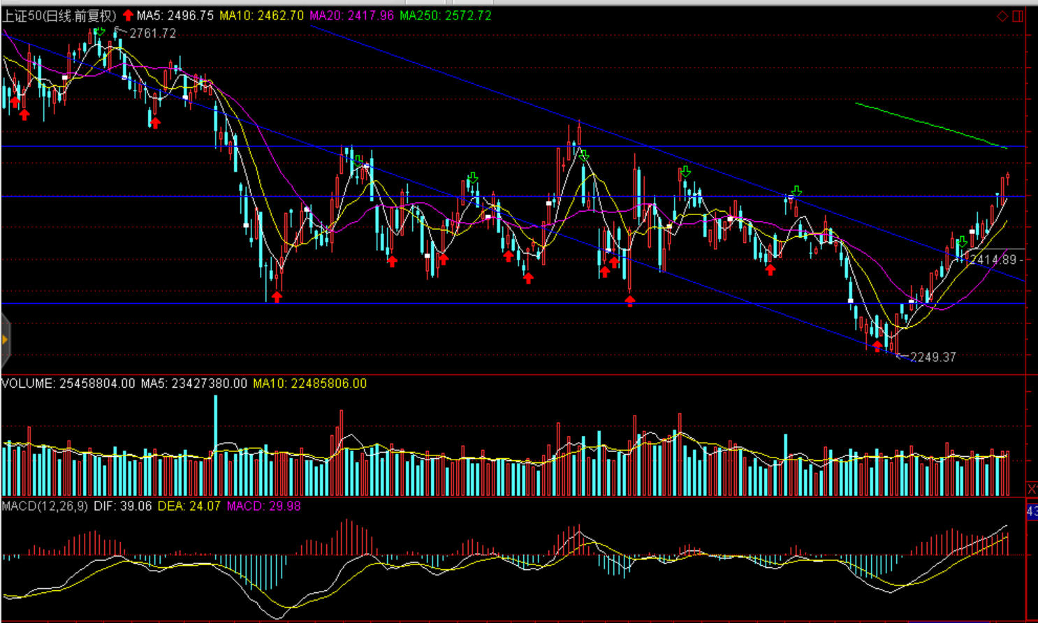 技術(shù)面:延續(xù)震蕩上行趨勢,上證50短期2570點一線、滬綜指2700點、1350點一線震蕩或?qū)⒓觿 ?/p>