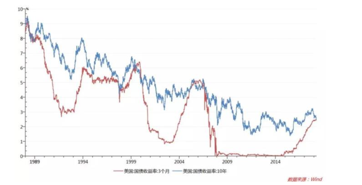 美債收益率倒掛:3個(gè)月美國國債收益率為2.459%,而10年期國債收益率為2.437%,這是自2007年以來長短端息差首次出現(xiàn)負(fù)值。收益率曲線倒掛也被稱為是反向收益曲線,通常被視為經(jīng)濟(jì)衰退的預(yù)測(cè)指標(biāo),歷史上的經(jīng)濟(jì)事件也表明,這種倒掛出現(xiàn)之后,的確會(huì)發(fā)生經(jīng)濟(jì)衰退或者經(jīng)濟(jì)危機(jī)。