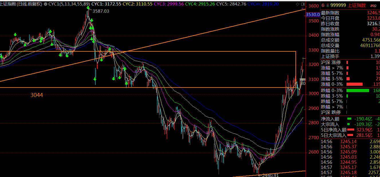 日線看,上證指數(shù)這里接近大級別中樞的上軌3295點(diǎn),這里短線大概率會震蕩回落,一蹴而就的可能性不大。