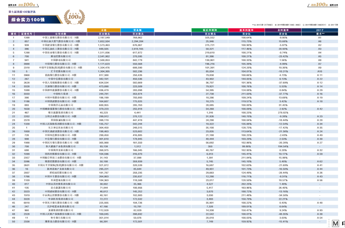 以客觀、專業(yè)、公正、準(zhǔn)確為指導(dǎo)準(zhǔn)則,通過(guò)評(píng)選出年度表現(xiàn)優(yōu)秀的港股上市公司,歷屆“港股100強(qiáng)”頒獎(jiǎng)典禮致力于為投資者提供有價(jià)值的投資參考,推進(jìn)內(nèi)地與香港資本市場(chǎng)數(shù)據(jù)的整合,推進(jìn)國(guó)家產(chǎn)業(yè)結(jié)構(gòu)升級(jí)、經(jīng)濟(jì)的發(fā)展。
