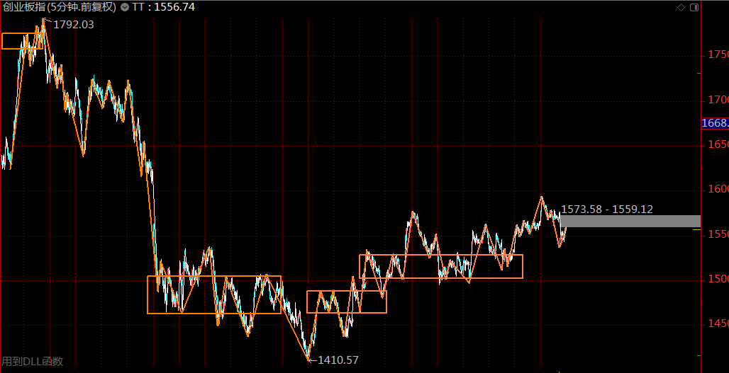 創(chuàng)業(yè)板這里仍然走的較為強(qiáng)勢(shì),需要關(guān)注1530點(diǎn)的支撐,只要不跌回下方的三十分鐘中樞,都可視作是在構(gòu)建第三類買(mǎi)點(diǎn)。結(jié)合滬指的情況來(lái)說(shuō),這里盤(pán)整背馳的概率更大,預(yù)期在下周初反彈后,創(chuàng)業(yè)板指數(shù)將會(huì)跌回三十分鐘中樞區(qū)間。