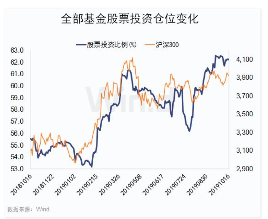 Wind數(shù)據(jù)顯示,截止10月16日,在全部3307只持有股票的基金中,股票投資比例為62.21%,下半年來累計增倉3.59個百分點。