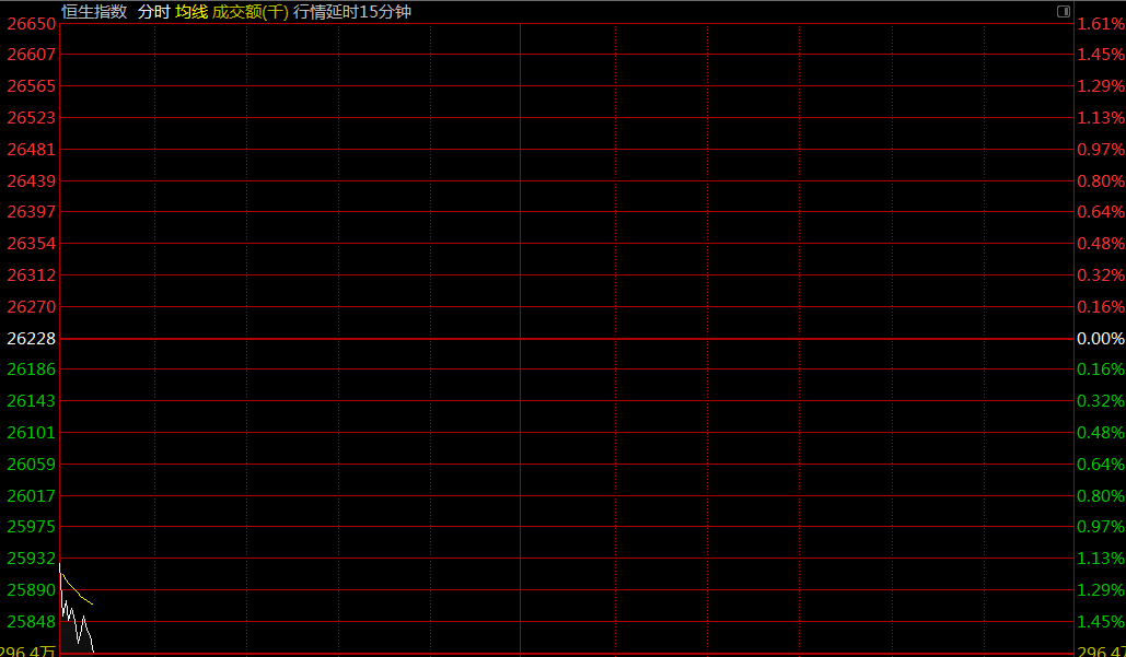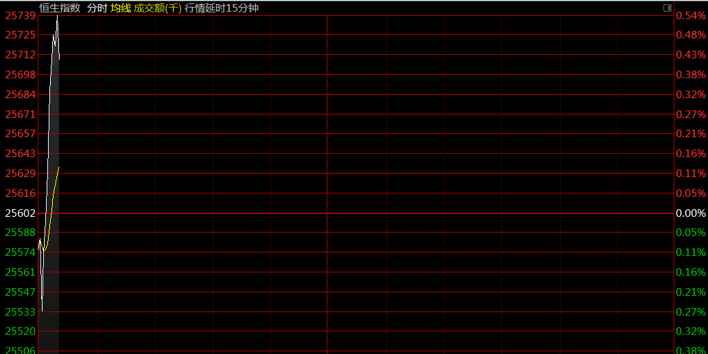 恒生指數(shù)開盤漲0.49%,報(bào)26062.24點(diǎn)。國企指數(shù)漲0.32%,報(bào)10578.92點(diǎn)。紅籌指數(shù)漲0.91%,報(bào)4246.24點(diǎn)。大市盤前成交15.34億港元。