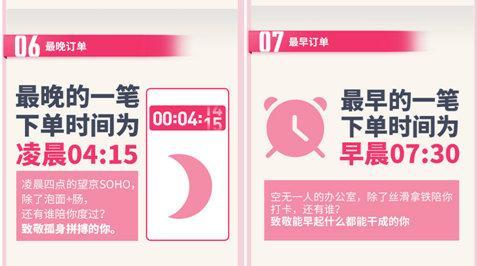 在辦公室下單的時間也反映了白領(lǐng)們的加班情況。數(shù)據(jù)顯示,北京、上海、廣州、深圳等一線城市毫無懸念的榜上有名,最晚下單時間是凌晨04:15,最早是早晨07:30。為了出方案、趕項目和完成KPI,他們披星戴月,好在還有數(shù)不清的咖啡和紅牛默默陪伴。