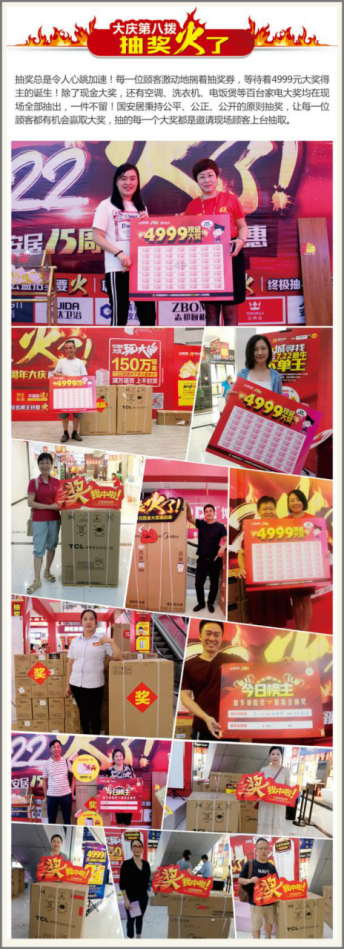 深圳新聞網(wǎng)訊 上周日,備受業(yè)內(nèi)矚目的國安居15周年大慶已圓滿落下帷幕。作為國安居年度最為重要的大慶盛典,這場(chǎng)活動(dòng)共持續(xù)了23天,為消費(fèi)者帶來一場(chǎng)打折、贈(zèng)禮、返現(xiàn)、抽獎(jiǎng)等多種方式組合的鉅惠盛宴,吸引了來自深惠兩城各區(qū)域及周邊城市的大批消費(fèi)者前往參觀采購。今天,國安居六家分店人流量激增、營業(yè)額節(jié)節(jié)攀升,總實(shí)收款近4600萬元,總收單5119單!讓消費(fèi)者真正地感受到了國安居15周年大慶活動(dòng)的力量?;顒?dòng)落下帷幕,國安居賺足了人氣、贏得了掌聲,而消費(fèi)者也是買得實(shí)惠、滿載而歸。下面跟著小編一起來回顧一下這場(chǎng)巔峰盛惠的精彩場(chǎng)面吧。