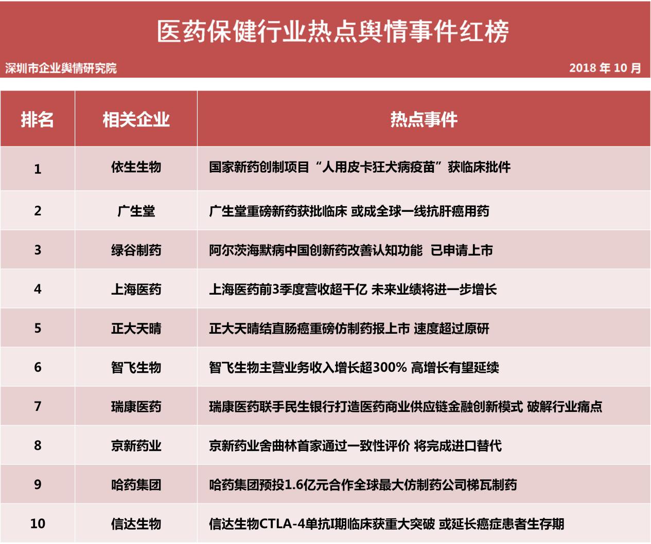 醫(yī)藥保健品行業(yè)熱點(diǎn)事件排行榜榜單說明: