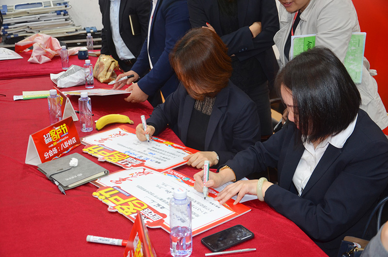 本次活動深惠七店總紛紛發(fā)言表決心,承諾勢必將全力以赴辦好開年第一場萬人團(tuán)裝會,給消費(fèi)者帶來更多的優(yōu)惠,提供更貼心的服務(wù),并在全員的見證下,簽訂了任務(wù)軍令狀。目標(biāo)已定,勢必達(dá)成。國安居的家人們用最飽滿的熱情,最熱血的狀態(tài)努力拼搏,確?!?·17客戶節(jié)”活動圓滿成功。