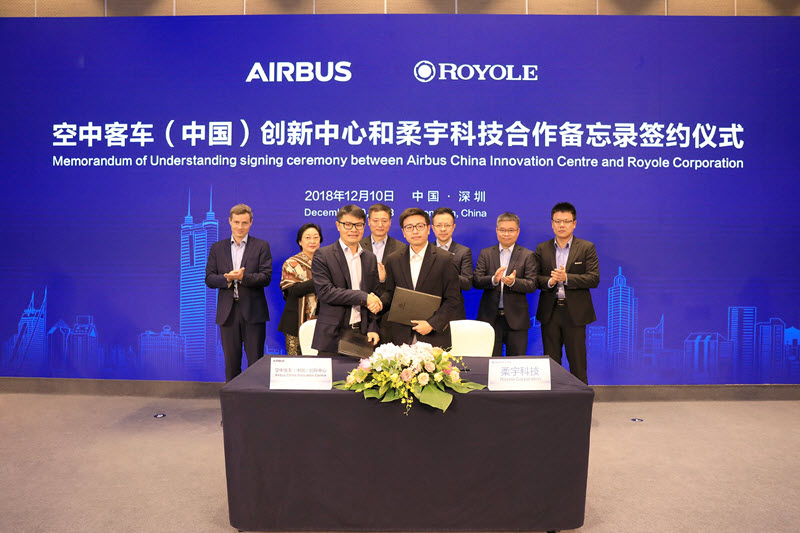 據(jù)了解,早在2018年12月,柔宇科技有限公司與空中客車(中國)創(chuàng)新中心在深圳正式簽署戰(zhàn)略合作備忘錄,雙方將就柔性電子技術(shù)在飛機(jī)客艙等場(chǎng)景的應(yīng)用和商業(yè)合作開展研究,探索柔性顯示、柔性傳感在客艙等場(chǎng)景內(nèi)的應(yīng)用,在客艙環(huán)境、安全性、節(jié)能等方面做進(jìn)一步提升,為乘客打造未來化、數(shù)字化、個(gè)性化的乘機(jī)體驗(yàn)。