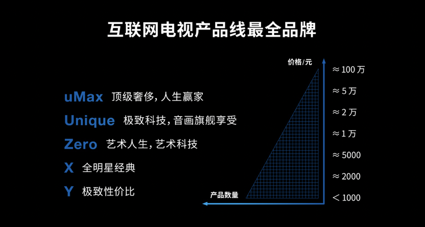 從頂級(jí)的uMax巨幕系列,到Unique系列追求黑科技,追求音畫(huà)旗艦級(jí)的享受,Zero系列的科技藝術(shù)質(zhì)感,經(jīng)典的X系列,以及即將推出的極致性價(jià)比的Y年輕系列,樂(lè)融 Letv超級(jí)電視的產(chǎn)品線涵蓋從40吋到120吋,價(jià)位段從千元起到幾十萬(wàn)元,已經(jīng)成為互聯(lián)網(wǎng)電視產(chǎn)品布局最全面的品牌。