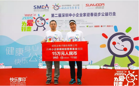 值得一提的是,本屆“為愛行走”活動的愛心冠名企業(yè)——中小企聯(lián)常務(wù)副會長、欣旺達(dá)電子股份有限公司董事長王威現(xiàn)場向中小企聯(lián)晴娃娃慈善基金捐款15萬元人民幣,并對本次活動提供了的全程贊助支持。