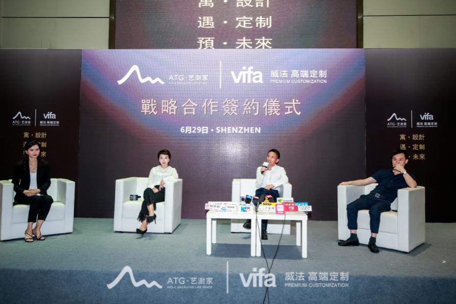 6月29日下午,ATG·藝澍家 & vifa威法戰(zhàn)略合作簽約儀式在紅星美凱龍深圳香蜜湖商場(chǎng)舉行,vifa威法董事長(zhǎng)楊煉、總經(jīng)理王超及威法高端定制核心區(qū)域代理商們悉數(shù)到場(chǎng),與ATG·藝澍家CEO張富麗、來自ATG亞太國(guó)際的設(shè)計(jì)師團(tuán)隊(duì)等就跨界合作議題展開深入的交流溝通?,F(xiàn)場(chǎng)火花碰撞,在高端家裝市場(chǎng)領(lǐng)域深耕多年的雙方領(lǐng)導(dǎo)分享了對(duì)“高奢住宅定制”的理解,坦言行業(yè)痛點(diǎn),剖析行業(yè)趨勢(shì),并就當(dāng)前高奢定制市場(chǎng)發(fā)展的現(xiàn)狀以及問題展開全面探討。