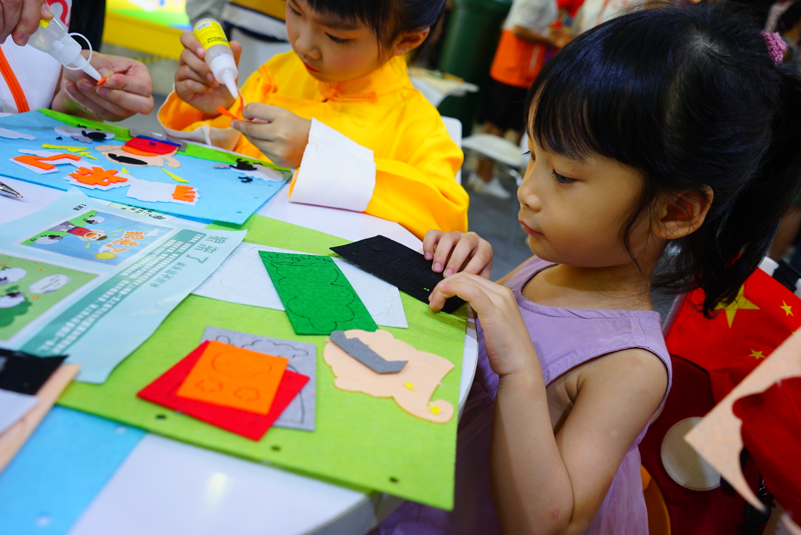 在“手工布書制作”體驗(yàn)區(qū),志愿者耐心地引領(lǐng)兒童制作專屬自己的一本不織布手工書,感受動(dòng)手及閱讀帶來的另一種快樂。