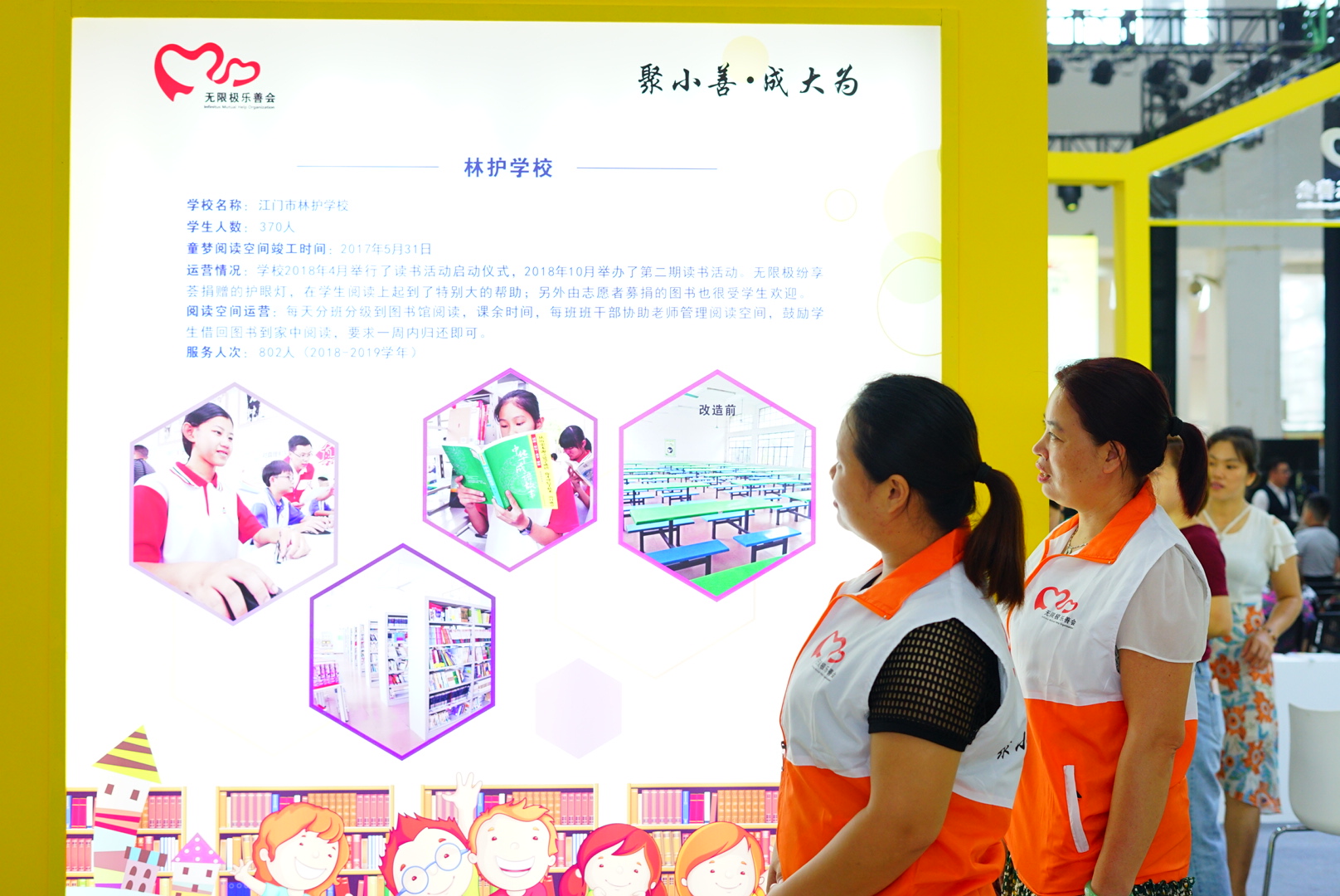 在南國書香節(jié)江門分會(huì)場(chǎng)的場(chǎng)館中央,“黃色小屋”尤其吸人眼球。在項(xiàng)目展示上,無限極樂善會(huì)多年來一直關(guān)注鄉(xiāng)村兒童的閱讀教育問題,自2015年起,攜手江門市相關(guān)政府部門發(fā)起了童夢(mèng)閱讀空間公益項(xiàng)目,致力于兒童閱讀空間建設(shè)及校內(nèi)閱讀推廣工作。在展區(qū),可以看到五所童夢(mèng)閱讀空間的運(yùn)營等基本情況。