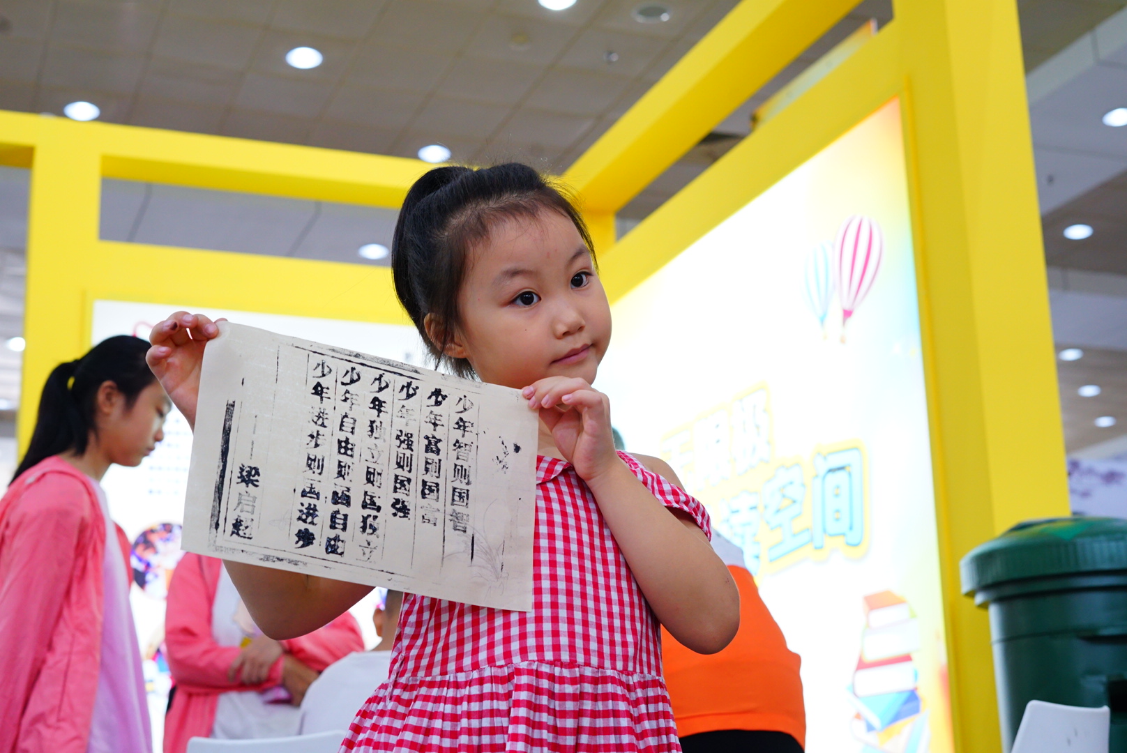 有了一系列視覺沖擊,現(xiàn)場(chǎng)還鼓勵(lì)大家動(dòng)動(dòng)手,“活字印刷”區(qū)和“手工布書”體驗(yàn)區(qū)也是不容錯(cuò)過。體驗(yàn)涂墨、拓壓等工序,活字印刷術(shù)聽就聽得多了,小朋友見還是第一次見,還有機(jī)會(huì)親自體驗(yàn)一番,感受濃濃書香氛圍。印刷的內(nèi)容節(jié)選自江門籍思想家、教育家梁?jiǎn)⒊膼蹏⑽摹渡倌曛袊f》。