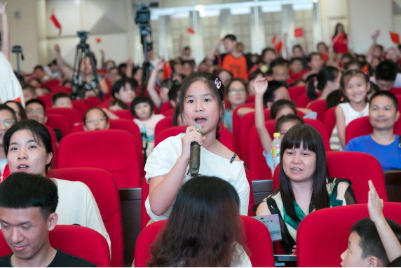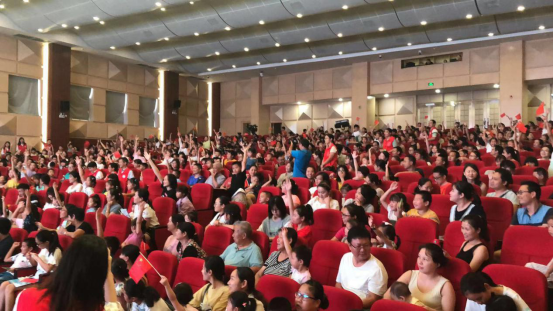 接下來,為進(jìn)一步增強青少年兒童的愛國意識,主辦方將戲劇教育與愛國教育有機融合,于文明知識問答后,邀請近千名觀眾一起舞動小紅旗,齊聲唱響《我和我的祖國》,點燃了在場每一位觀眾的愛國熱情,觀眾們跟隨著旋律,共同歌唱祖國,深情祝福祖國明天更加輝煌。