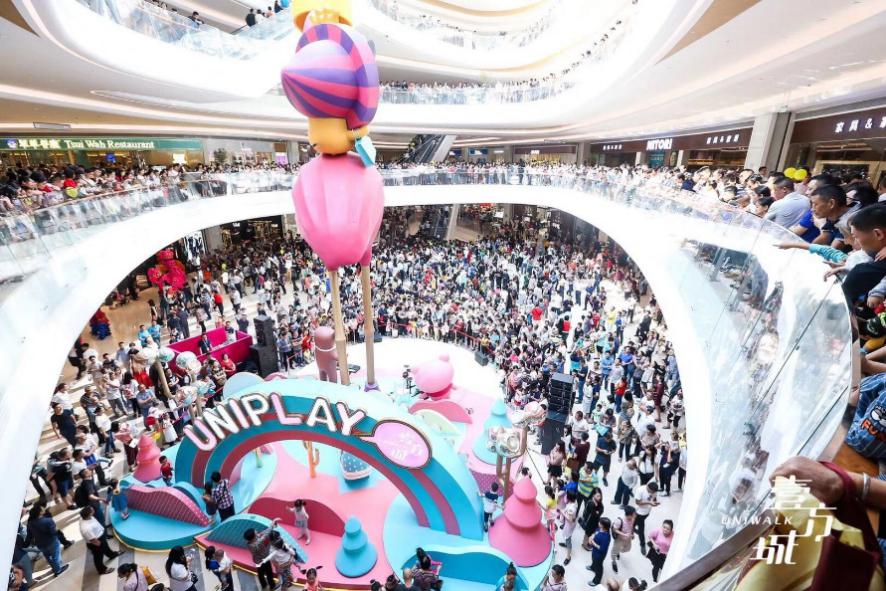 另一個是壹方城自行設(shè)計的6大自有IP——UNIPLAY家族,6個IP形象萌態(tài)可掬,受到了消費者的普遍認(rèn)可。壹方城還通過制作公仔、帆布袋等實用IP周邊,以及與國際一線化妝品LANC?ME以及喜茶、潮宏基、來電、我是酸奶君等品牌聯(lián)名,巧妙加深與消費者的情感鏈接,成就獨特的壹方記憶。