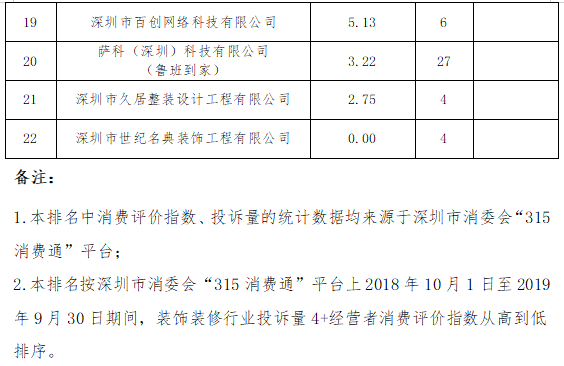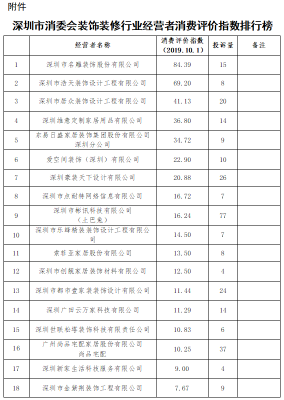 深圳市消委會(huì)發(fā)布裝飾裝修行業(yè)消費(fèi)評(píng)價(jià)指數(shù)排行榜