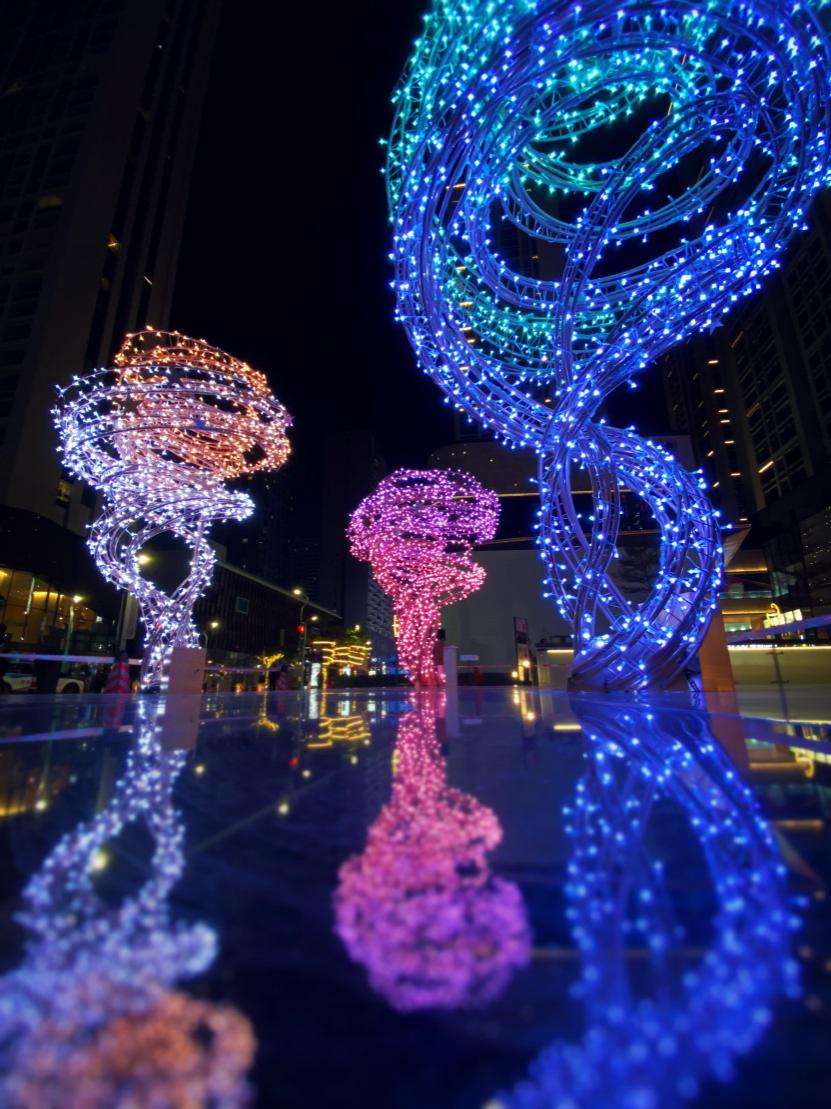 抬眼是與城市燈光秀交織相融的超美“飄帶”