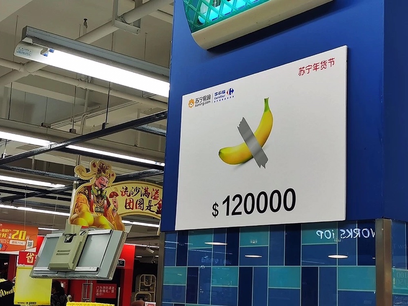 售價(jià)12萬美元的香蕉你見過嗎?反正 小編 今天在家樂福 華南區(qū)門店 見到了!這可是從美國巴塞爾藝術(shù)展 引進(jìn)的行為藝術(shù)。 獲此靈感,蘇寧版“天價(jià)年貨” 應(yīng)運(yùn)而生!