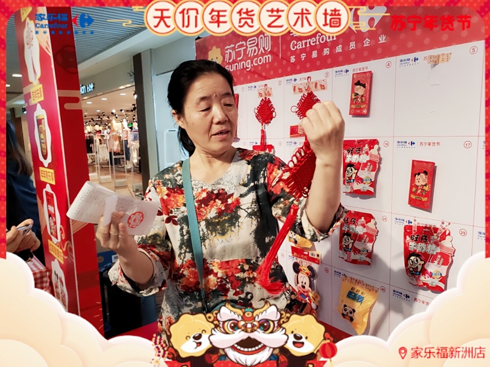 天價(jià)年貨藝術(shù)墻,藝術(shù)年貨送不停 ! 1月17日 至 1月 19 日 , 家樂福華南區(qū)廣州員村店、珠海吉大店、福州寶龍店 、廈門中華城店及 深圳新洲店 (活動(dòng)時(shí)間為1.16-1.18) 活動(dòng)繼續(xù) 。 禮品數(shù)量有限,每天送完即止 !蘇寧家樂福 實(shí)力助你過年味滿滿的春節(jié) ,邀請您 來把年貨驚喜領(lǐng)回家 !
