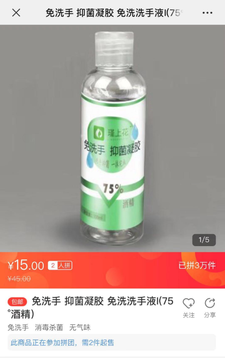 春節(jié)假期進(jìn)入尾聲后,有少部分工廠陸續(xù)復(fù)工。其中有一家來著于蘇寧“拼工廠”的河北企業(yè)與蘇寧拼購?fù)献?,開足馬力,全力生產(chǎn)酒精含量為75%的免洗手抑菌凝膠。據(jù)蘇寧拼購相關(guān)負(fù)責(zé)人介紹:“蘇寧將根據(jù)最近疫情消費(fèi)數(shù)據(jù)指導(dǎo)該‘拼工廠’生產(chǎn),預(yù)估未來幾天銷量,讓工廠效率達(dá)到最大?!睋?jù)悉,該款“75%免洗手抑菌凝膠”商品僅2月2日上半日便拼出3萬單。河北“拼工廠”負(fù)責(zé)人表示,目前產(chǎn)能能達(dá)到日均20萬瓶。