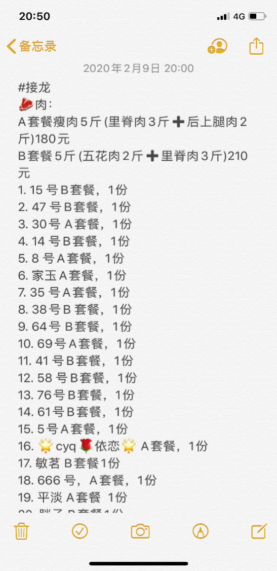 胡玉玲統(tǒng)計的團購清單