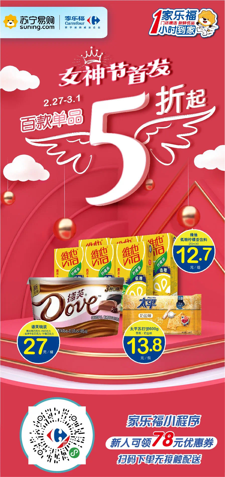 伴隨著春風(fēng)一并吹來的,還有3月最美的節(jié)日“女神節(jié)”!家樂福提前祝各位女神們節(jié)日快樂!當(dāng)然,還有大家心心念念的勁爆福利!