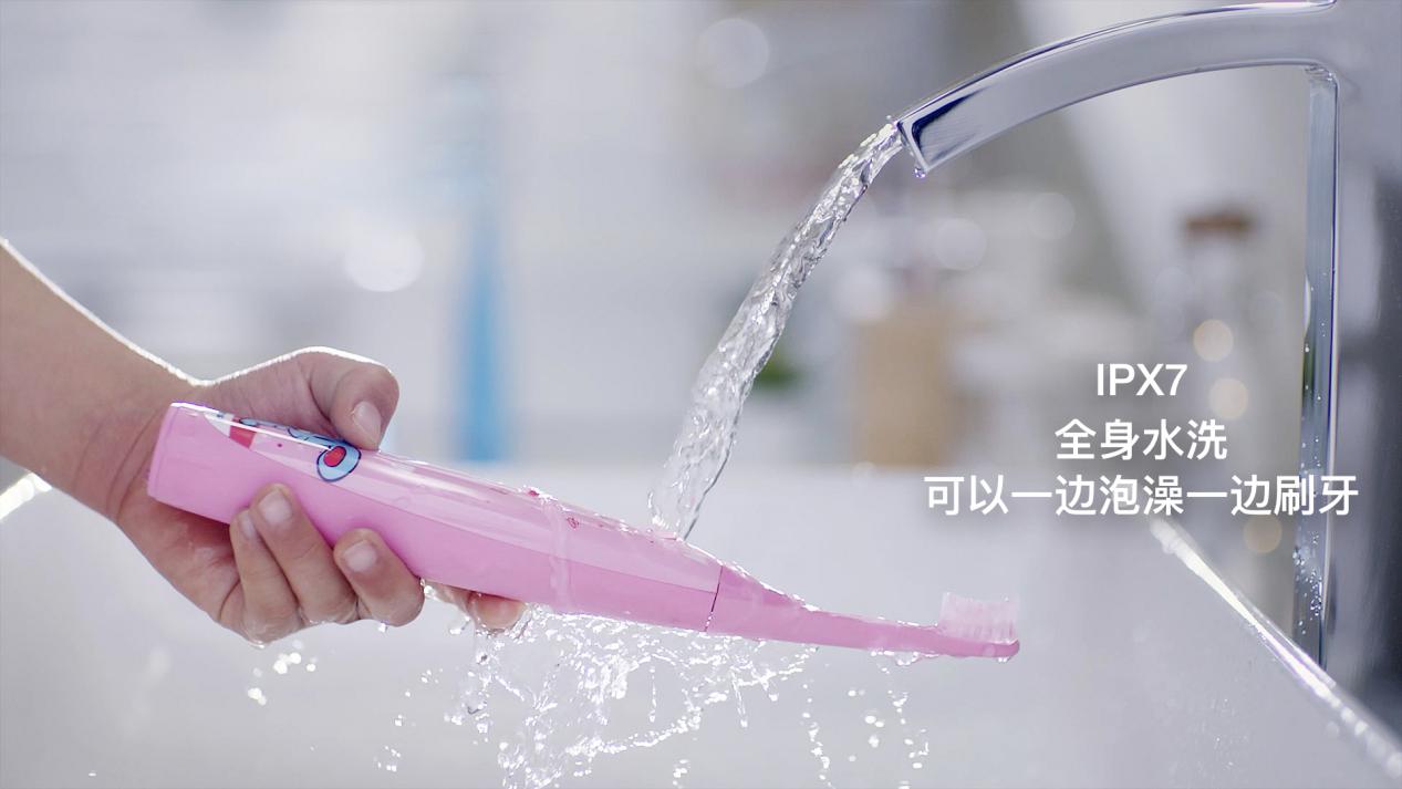 此外,該新品還支持IPX7級別防水,可全身水洗,讓孩子一邊洗澡也能一邊刷牙。
