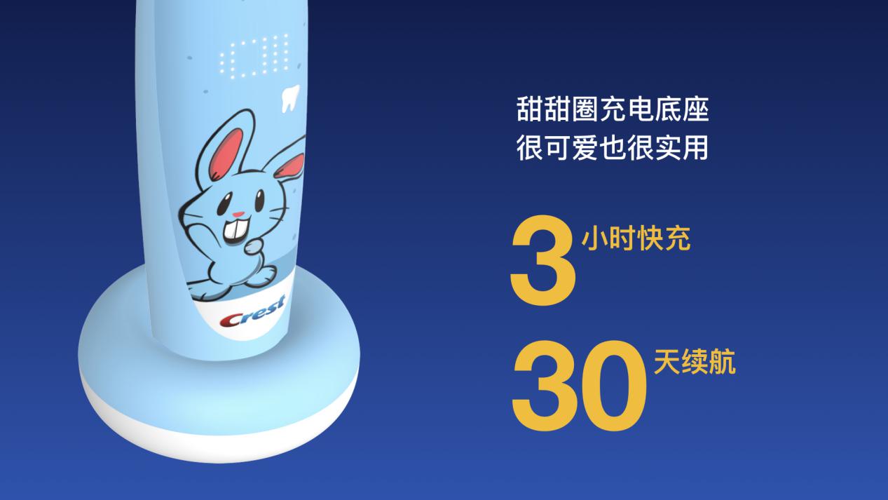 S7000K智能音樂兒童電動牙刷還配備甜甜圈充電底座,做到了3小時快速充電,實現(xiàn)30天續(xù)航的目的。
